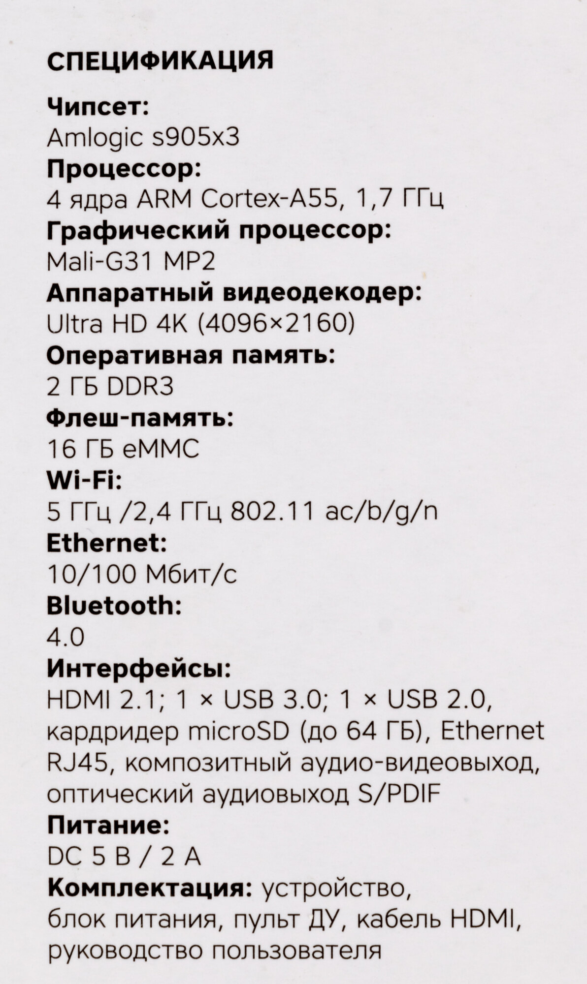 Медиаплеер Rombica Smart Box Y1, Amlogic S905x3, 4K Ultra HD, 2 GB RAM, Bluetooth, Android 9.0