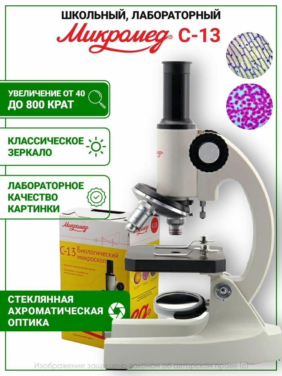 Биологический школьный/учебный/оптический/световой микроскоп Микромед С-13 (40x-800x)