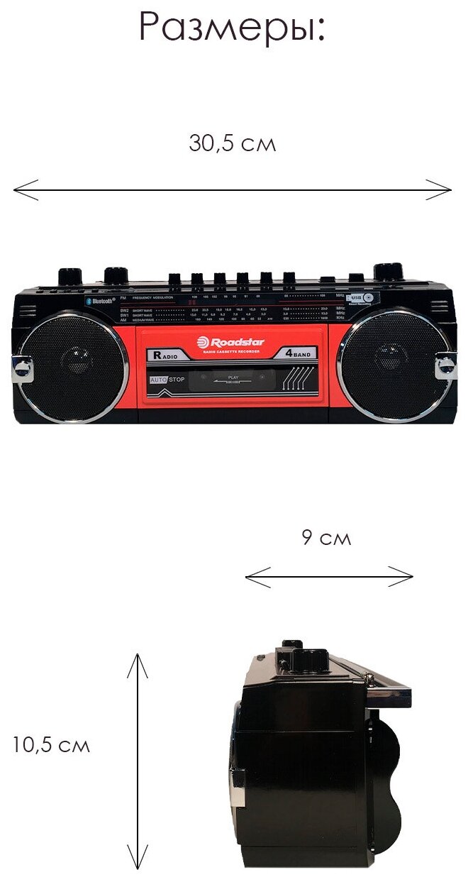 Ретро-магнитофон Roadstar RCR-3025Rd, красный интересное: