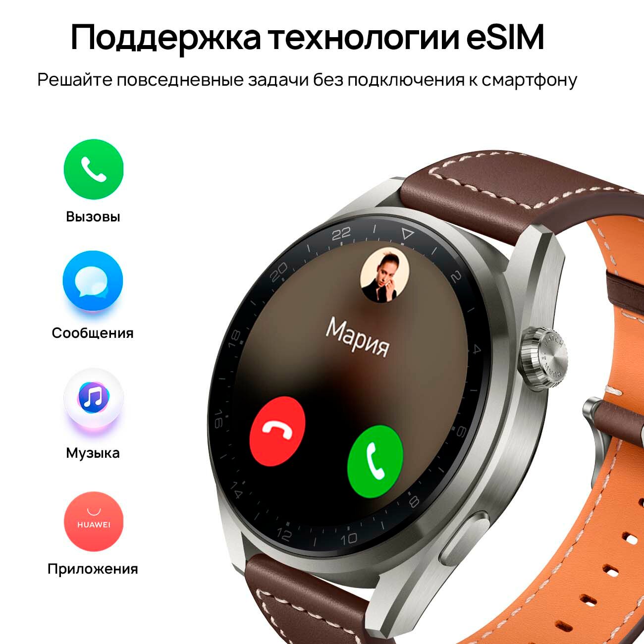 HUAWEI Умные часы HUAWEI Watch 3 Pro LTE 48мм, коричневый ремешок с титановым корпусом
