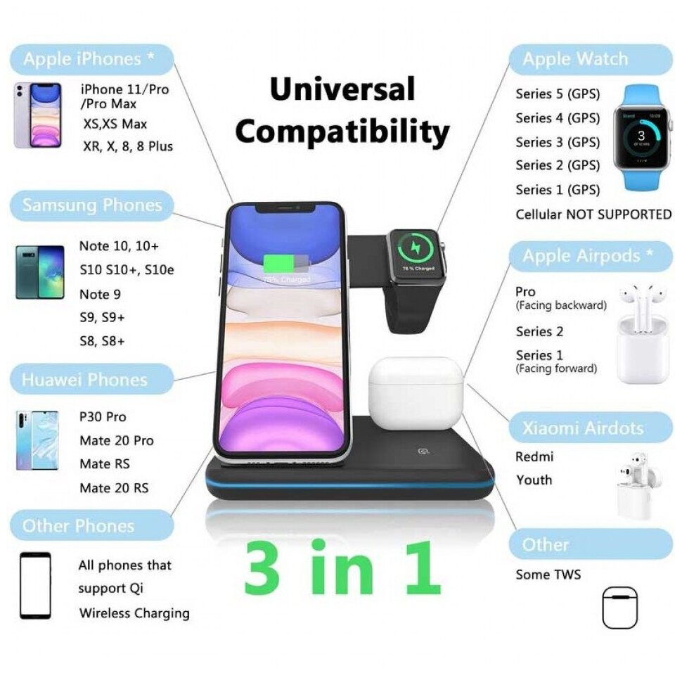 Ниже Вы можете прочитать отзывы на Беспроводная док станция 3 in 1 с функцией быстрой зарядки (Черный), ознакомится с подробными характеристиками, посмотреть интересные обзоры и фотографии на Беспроводная док станция 3 in 1 с функцией быстрой зарядки (Черный).