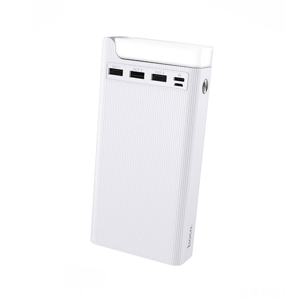 Аккумулятор внешний HOCO J62 Jove, 30000 mAh, индикатор, 3 USB выхода, Type-C, Micro USB, лампа, цвет белый