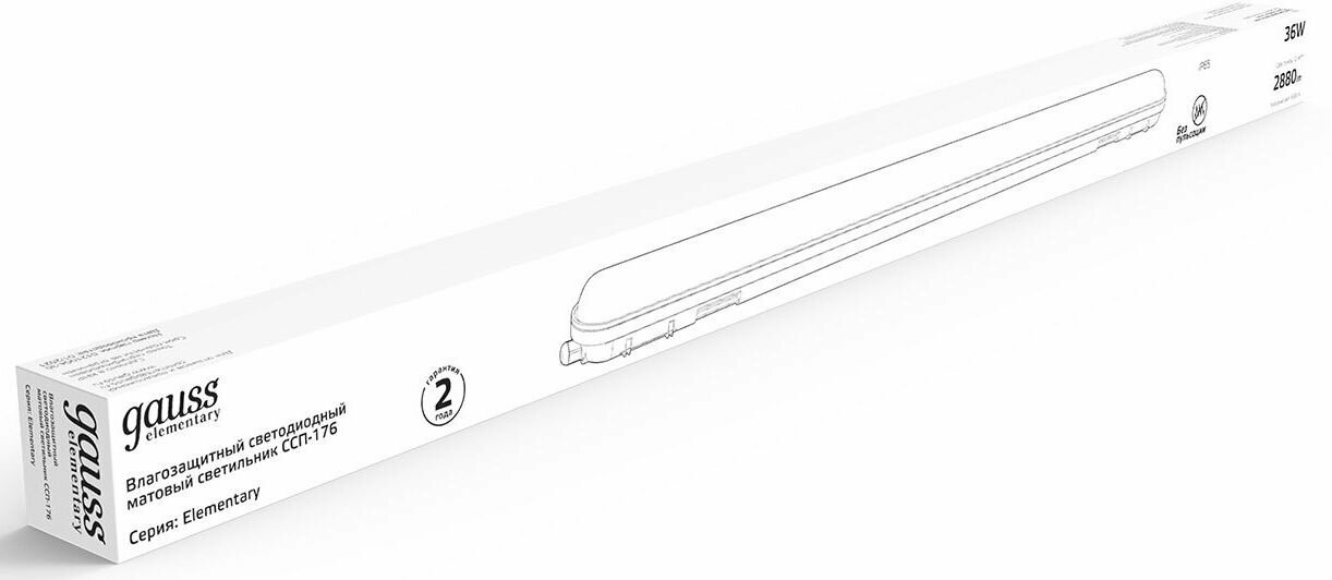 Светильник модульный светодиодный влагозащищенный Gauss ССП-176 Elementary 1200 мм 36 Вт, нейтральный белый свет