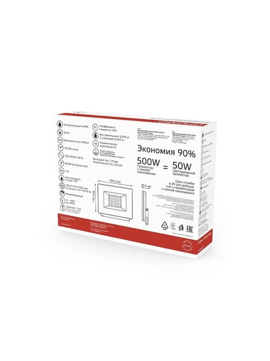 СохранитьПрожектор Gauss Elementary 50W 3510lm IP65 6500К черный промо 1/10 интересное: