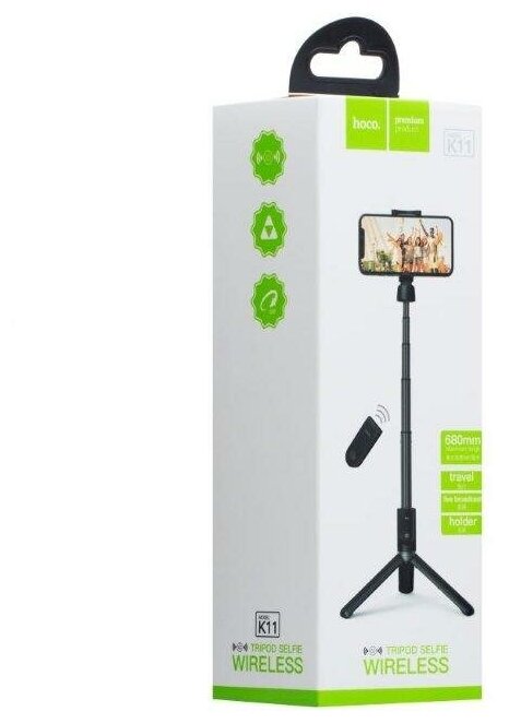Hoco Монопод-тренога для селфи Hoco K11, беспроводной, BT3.0, пульт ДУ, черный