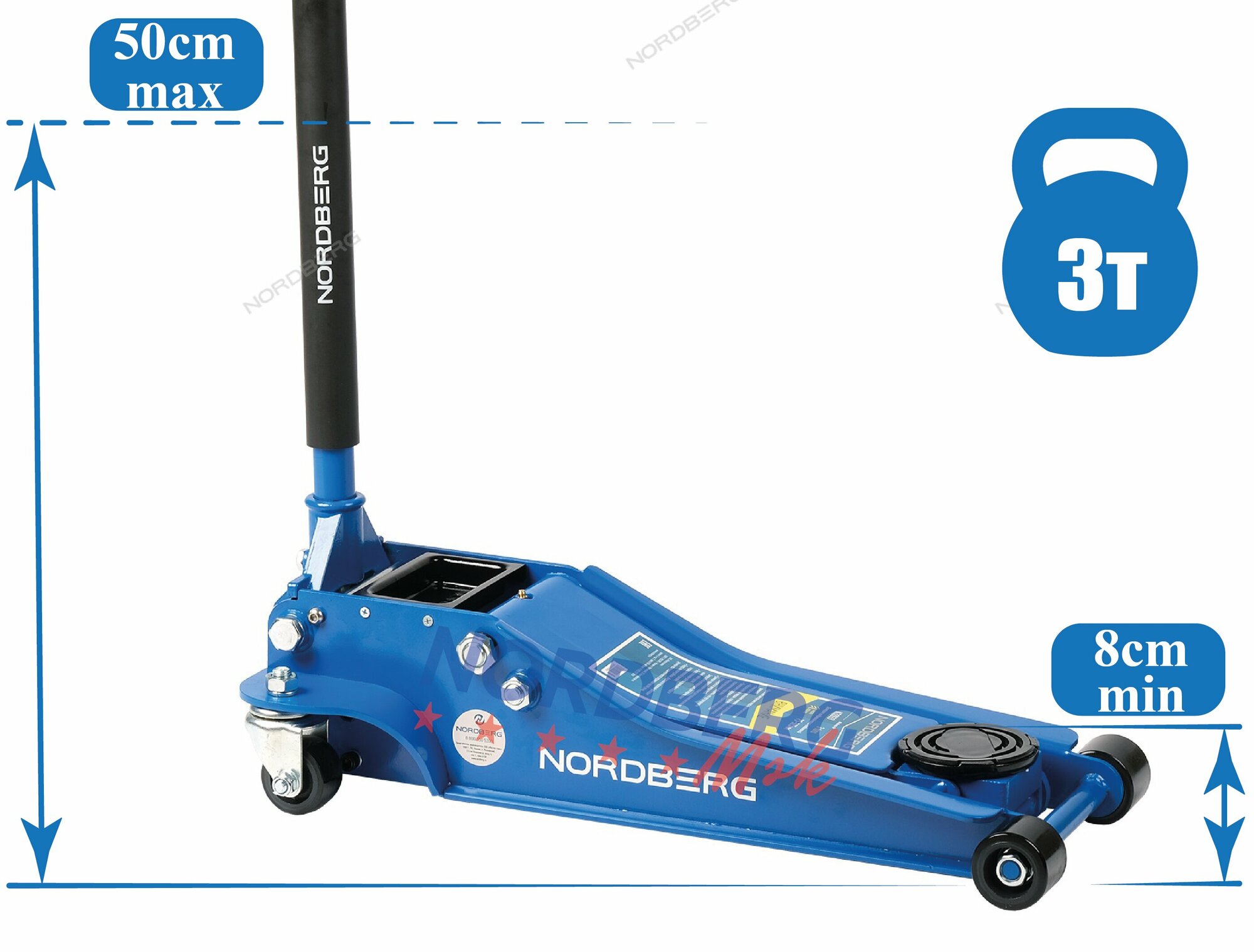 Домкрат Подкатной, 3 Т, H=80 - 500 Мм Nordberg арт. N32033