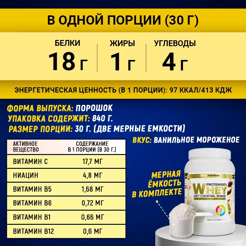 Сохранитьбелковый коктейль "Whey Protein" со вкусом ванильное мороженое ТМ aTech nutrition 840гр интересное: