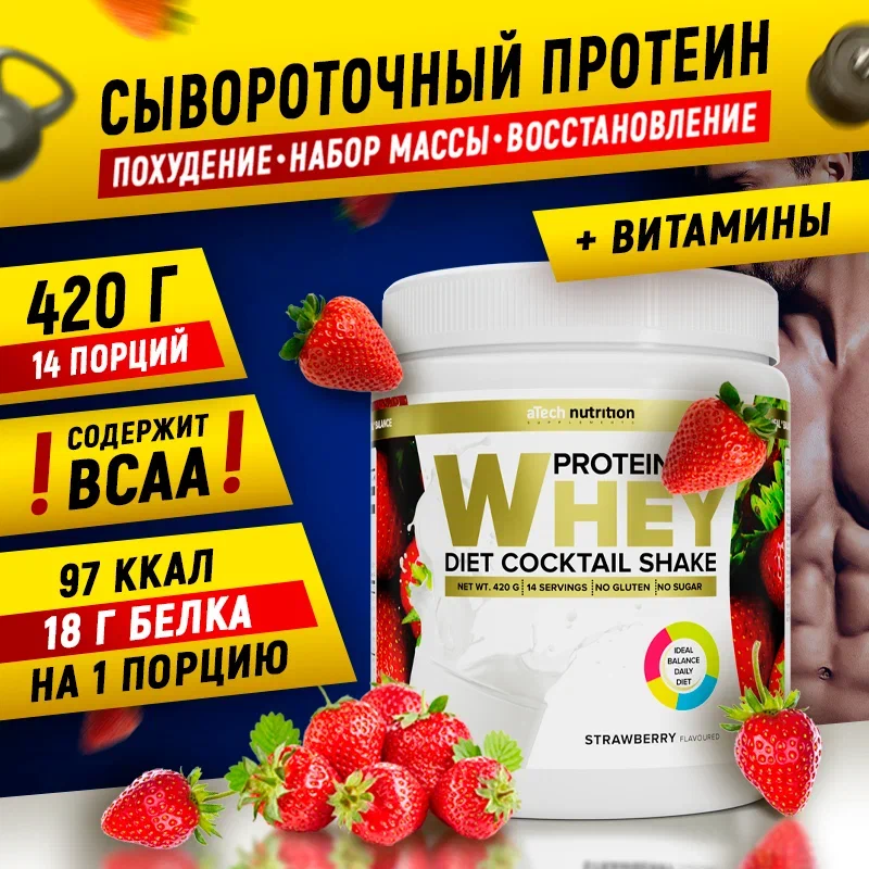 Купить белковый коктейль "Whey Protein" со вкусом клубники ТМ aTech nutrition 420гр