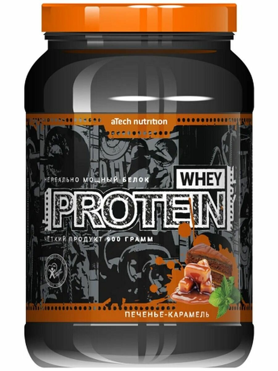 Протеин cывороточный со вкусом печенья и карамели Whey Protein aTech Nutrition 900 гр.