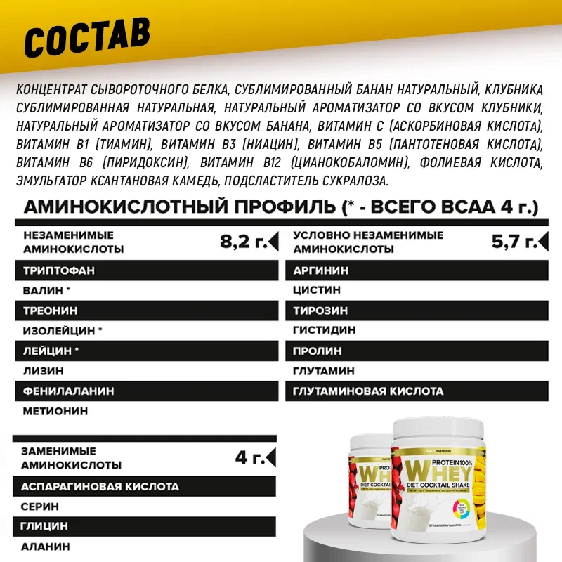 | Отзыв: | Так как я пью это не ради спортивных результатов, а просто для себя, для насыщения организма витаминами, не скажу ничего про эффективность. Вкус клубничный с кусочками фруктов очень нравится. |