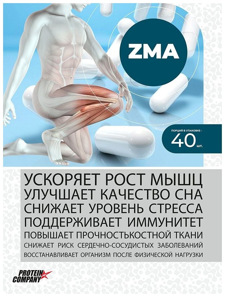 ZMA Zinc + Mg + B6 / PROTEIN.COMPANY / ZMA Комплекс / Капсулы / 40 порций / 120 капсул интересное: