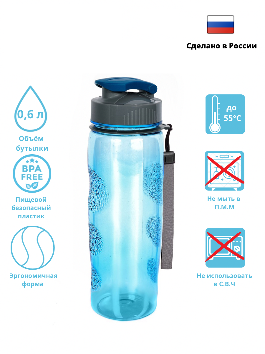 Бутылка для воды спортивная 0.6л, Голубая. интересное: