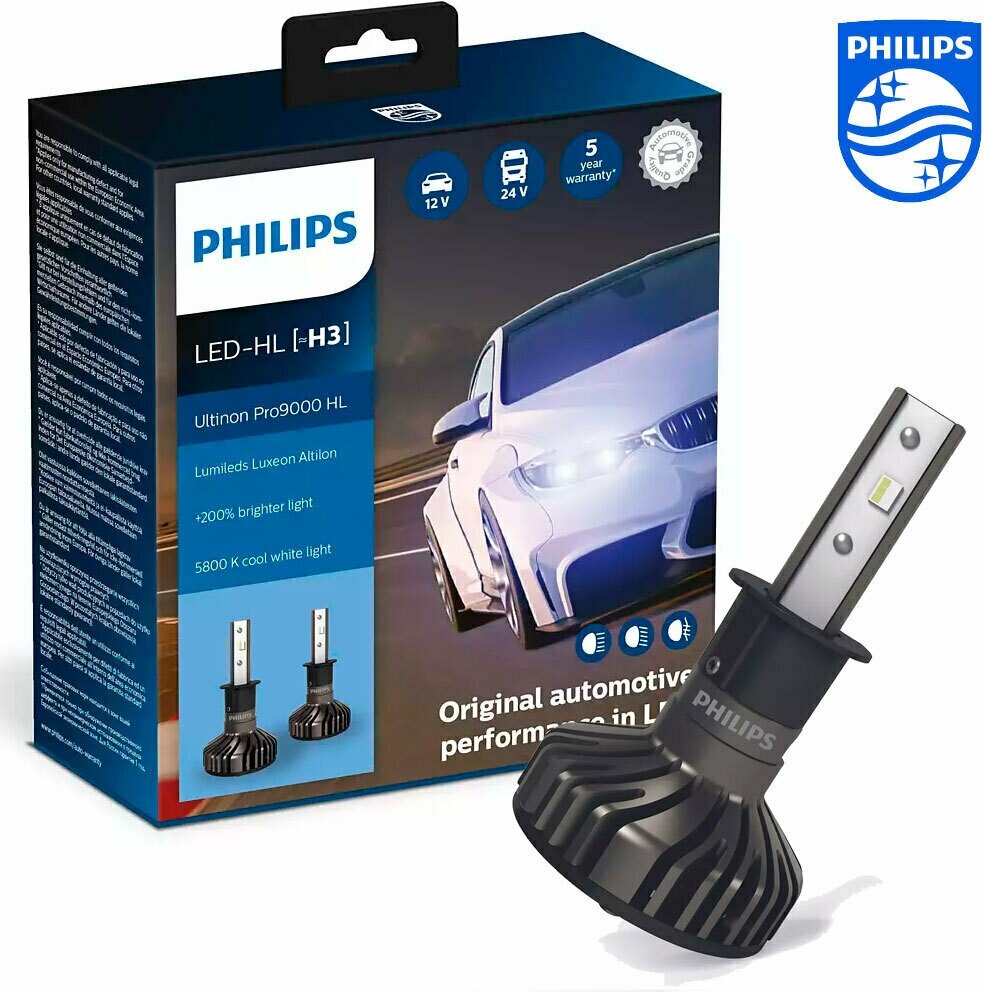 Лампа автомобильная светодиодная Philips H3 12/24V-LED (PK22s) 5800K 18W Ultinon Pro9000 HL LED (к.уп.2 шт.)