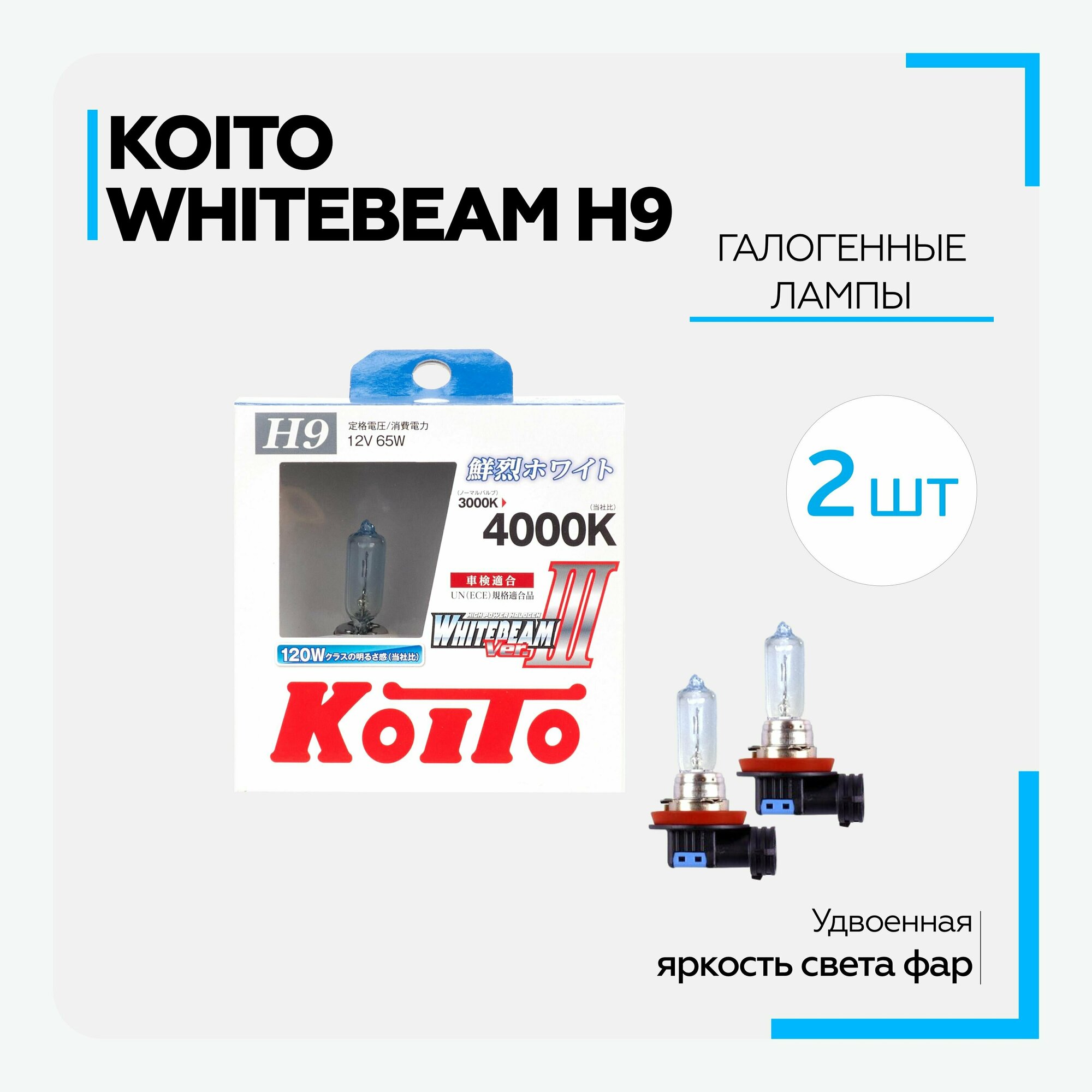 Лампа высокотемпературная Koito Whitebeam H9 12V 65W (120W) 4000K (комплект 2 шт.) KOITO P0759W | цена за 1 шт