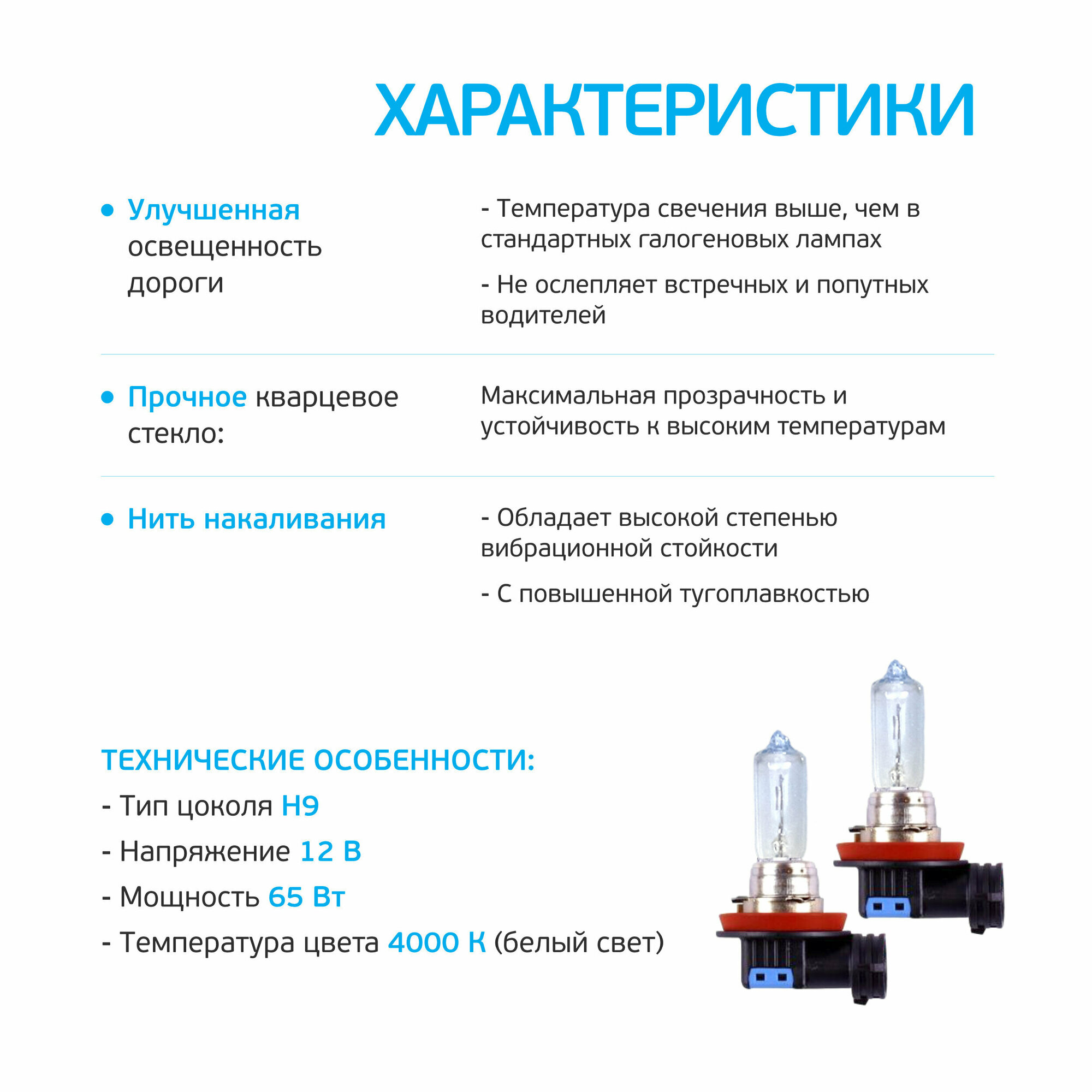 Лампа высокотемпературная Koito Whitebeam H9 12V 65W (120W) 4000K (комплект 2 шт.) арт. P0759W