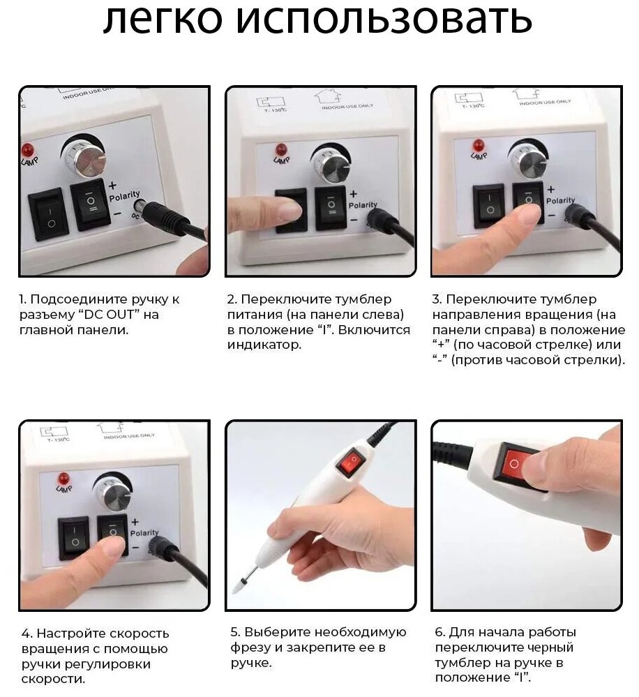| Плюсы: | Качественный аппарат, довольно компактный, свою работу выполняет отлично. Теперь смогу сама делать маникюр и педикюр не тратя деньги и время на походы к мастеру. |