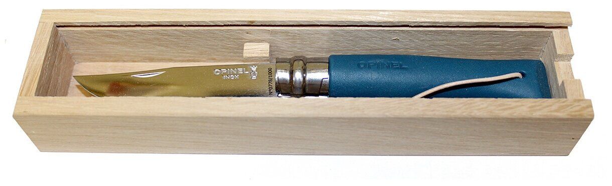 Нож Opinel №8, нержавеющая сталь, лимитированная серия, синяя кожаная рукоять интересное: