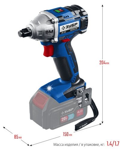 Бесщеточный гайковерт ЗУБР Профессионал GB-250,без аккумуляторов и ЗУ