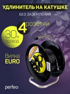 Удлинитель на катушке Perfeo RU POWER без заземления 30м 4гн с т/з 10А ПВС 2х1 IP44 (РБК16) интересное: