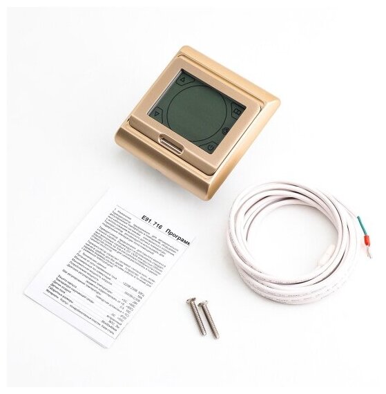 Купить Терморегулятор Nunicho E 91.716, сенсорный программируемый термостат для теплого пола с термодатчиком 3600 Вт, золотой