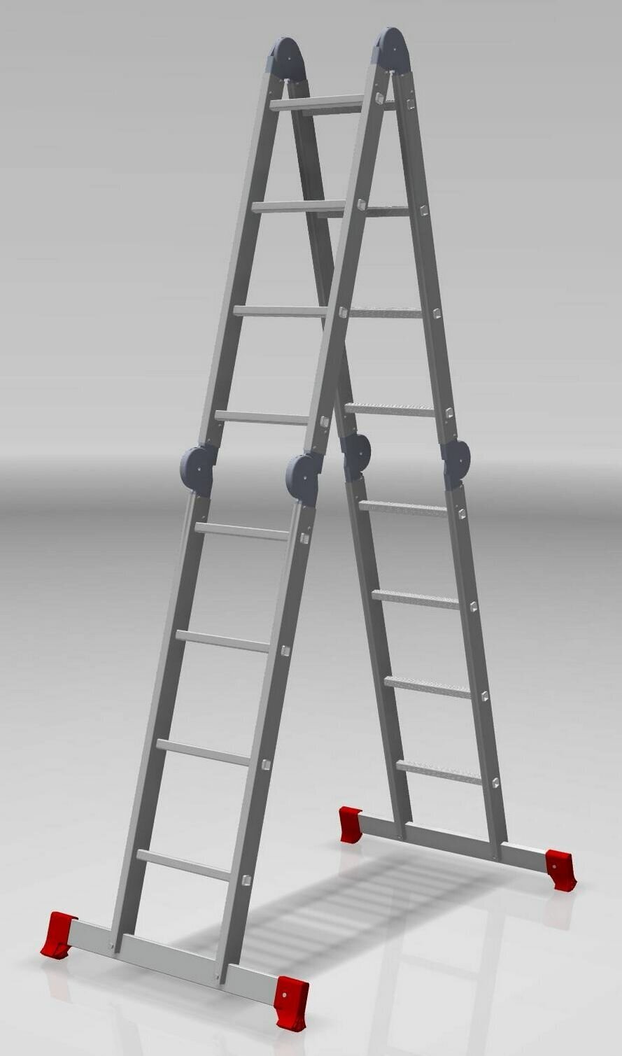 Купить Лестница-трансформер шарнирная Новая высота NV 1320, алюминиевая, 4 x 4 ступени, 4,37 м