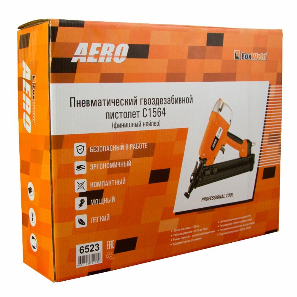 Пневматический гвоздезабивной пистолет AERO C1564, FoxWeld