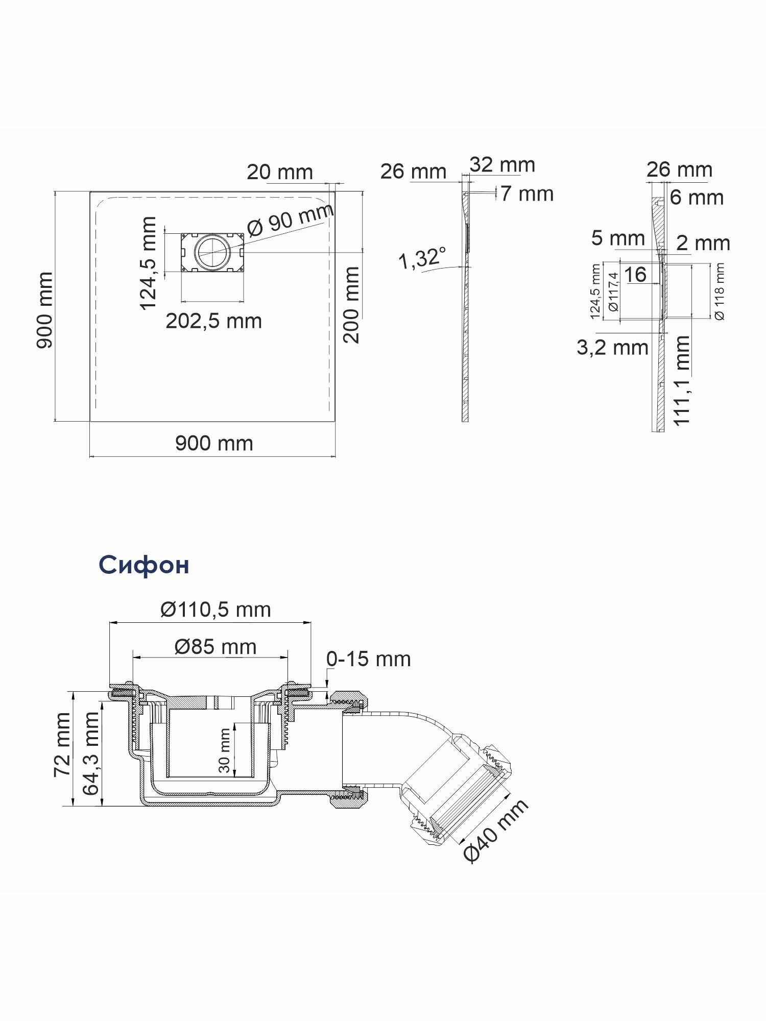 | Диаметр слива | 90 мм |