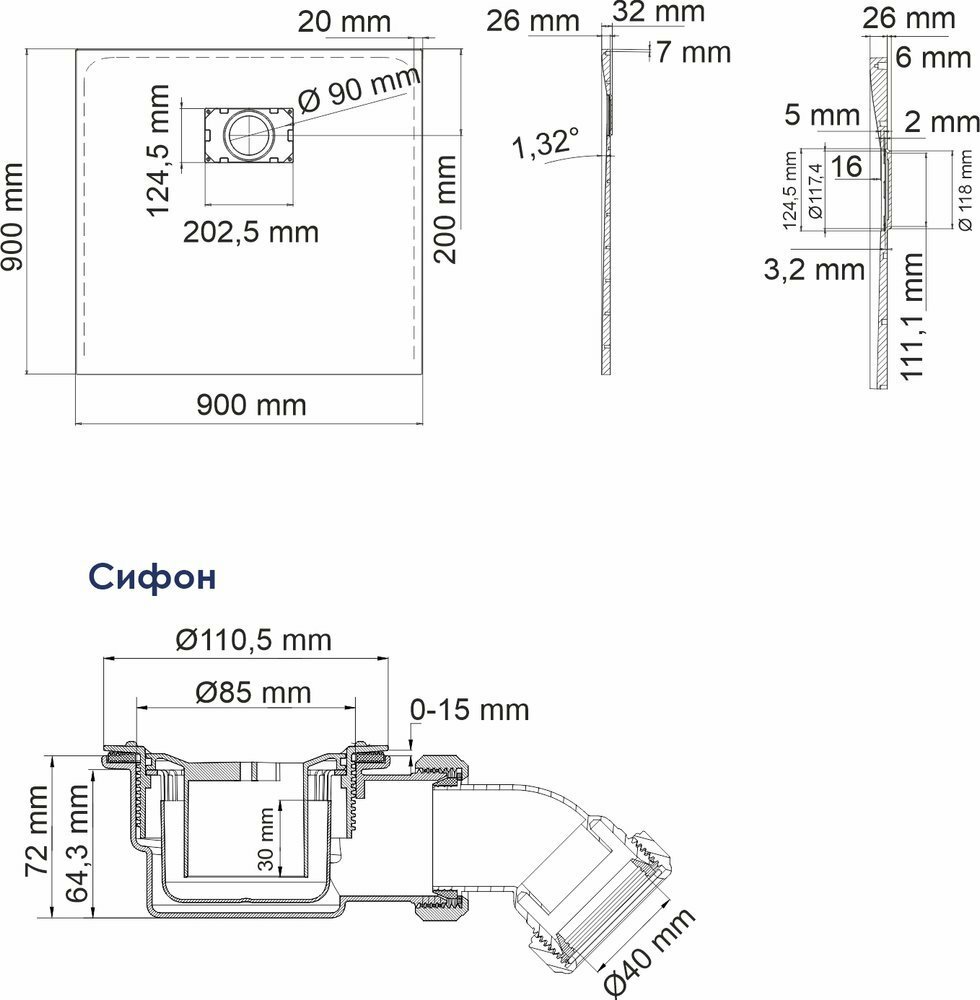 | Диаметр слива | 90 мм |