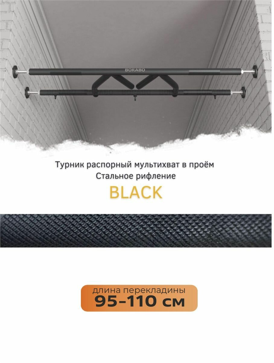 Турник распорный мультихват в проем BLACK - стальное рифление 95-110 см интересное: