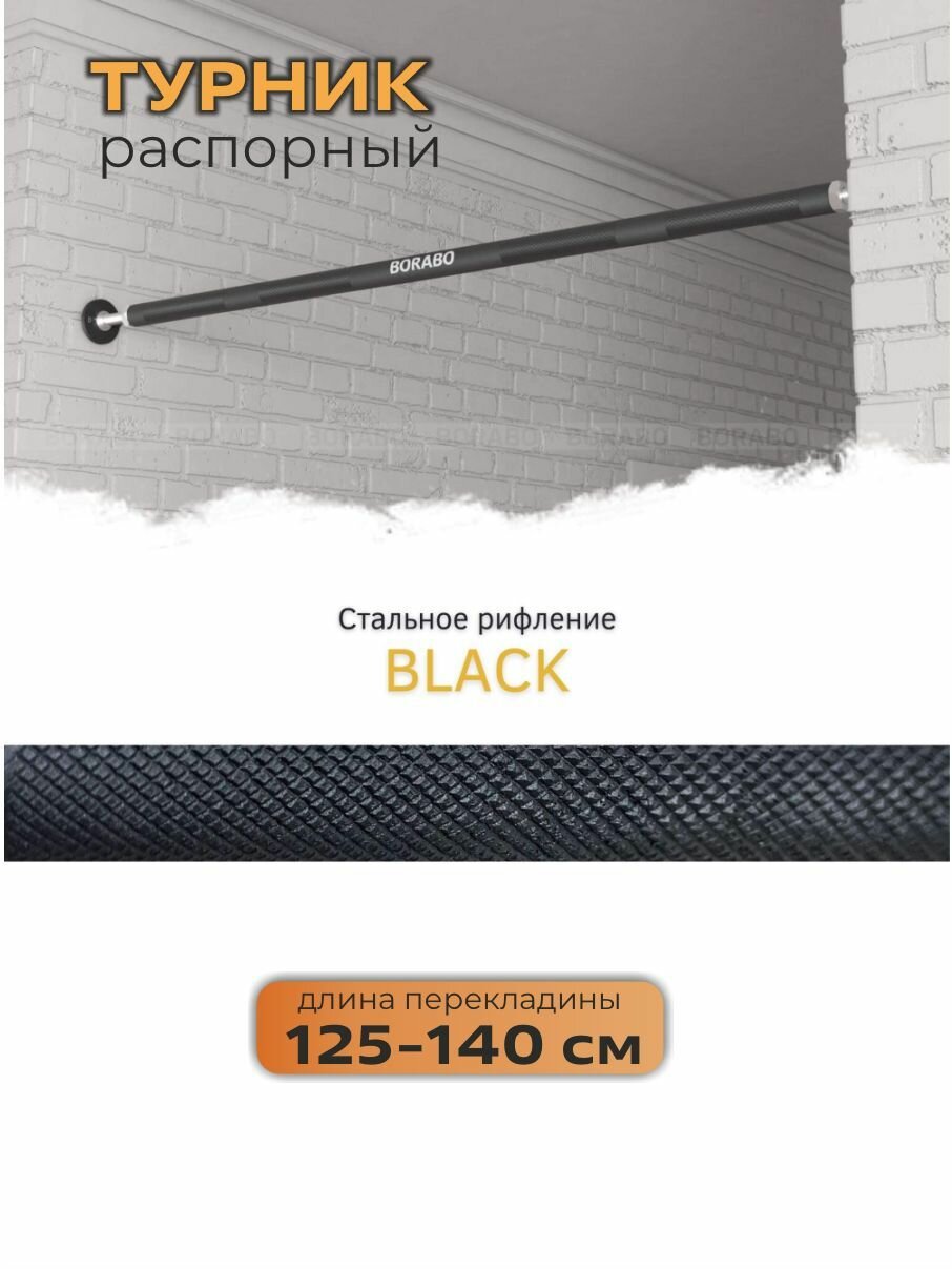 Турник распорный в проем BLACK - стальное рифление 125-140 см интересное: