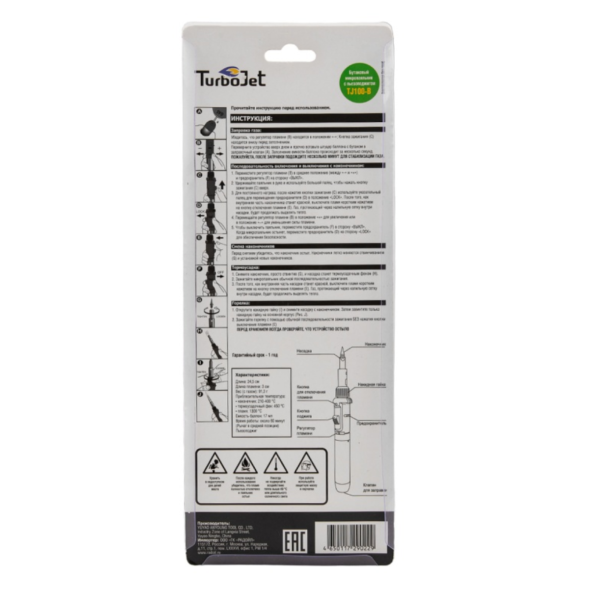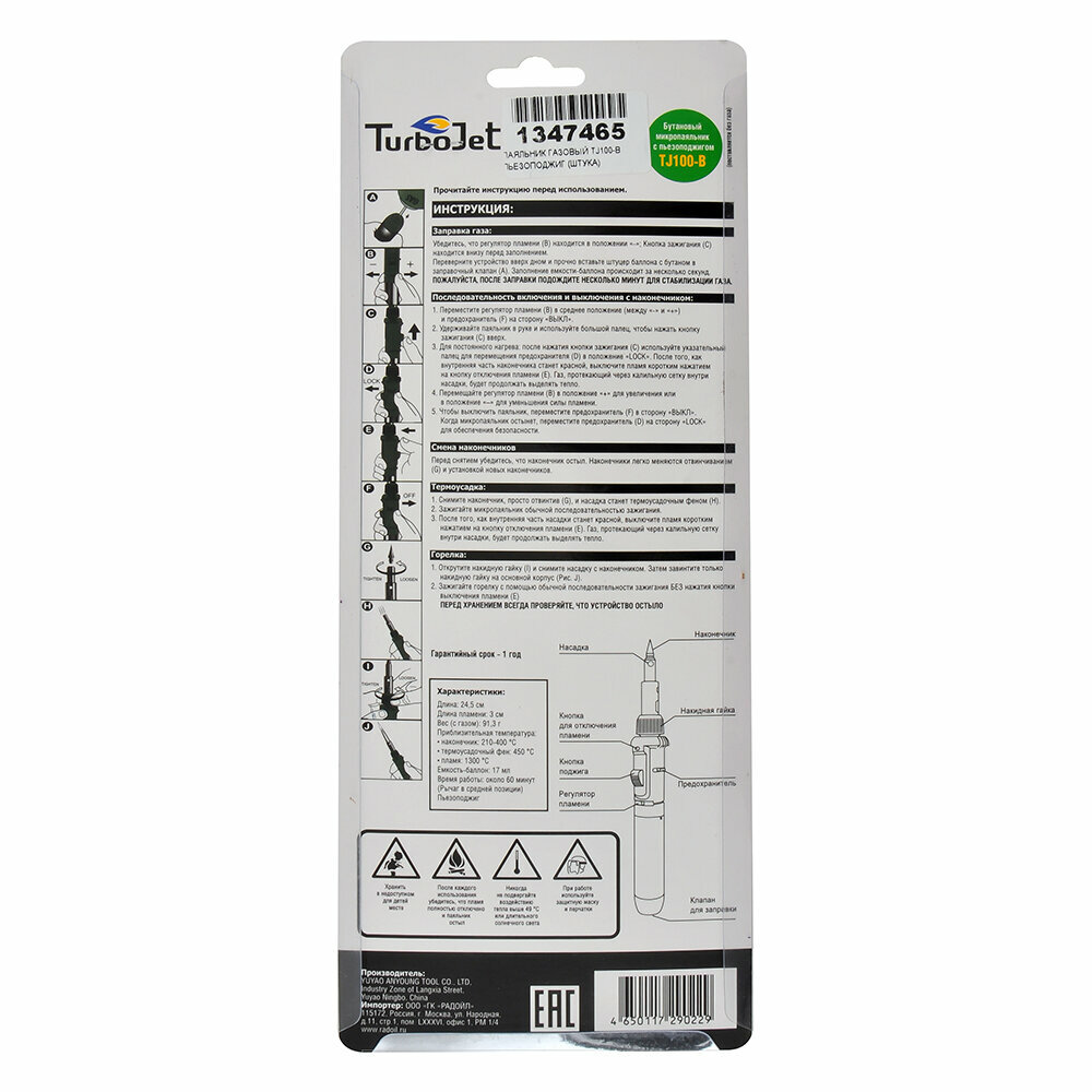 Газовый паяльник с пьезоподжигом Turbojet TJ100-B интересное: