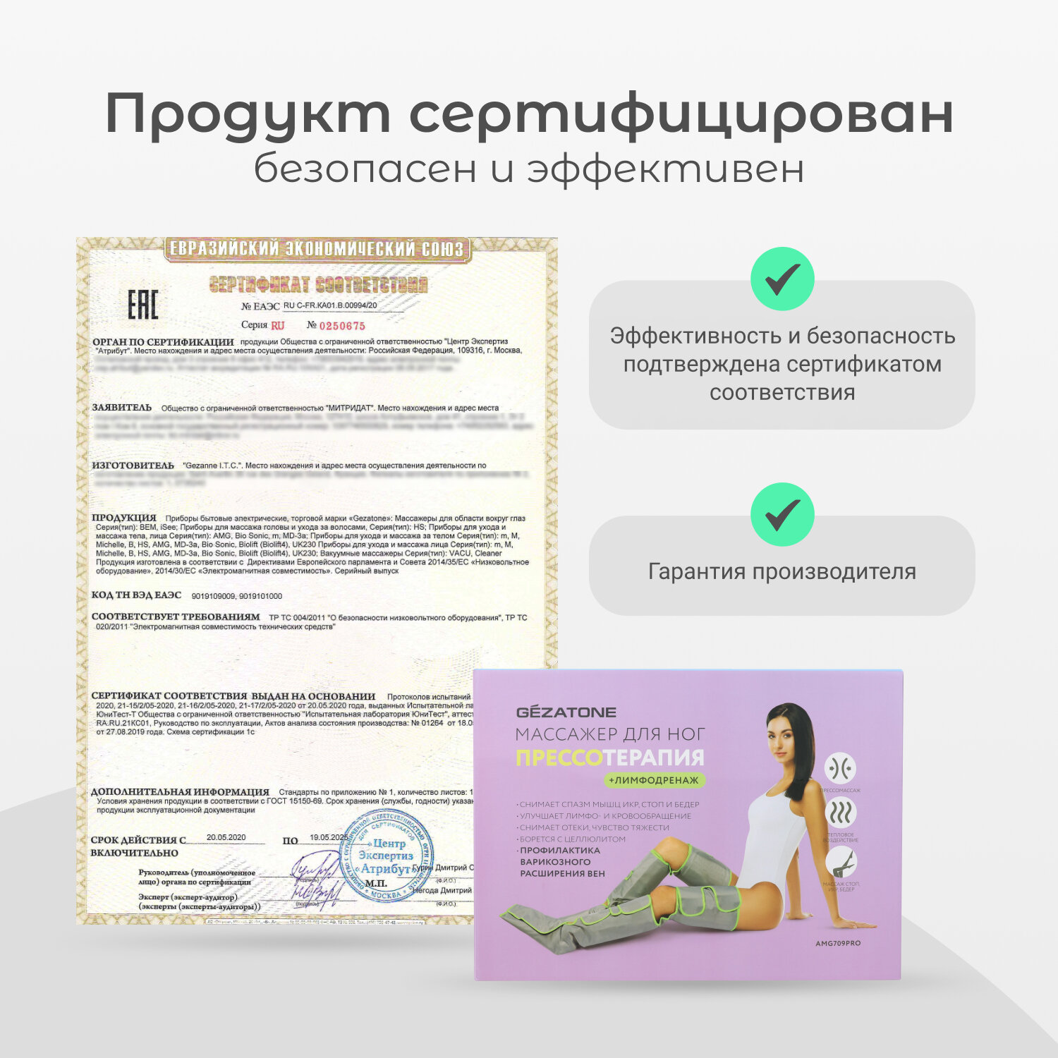 Лимфодренажный массажер для ног, прессотерапия AMG 709PRO, Gezatone
