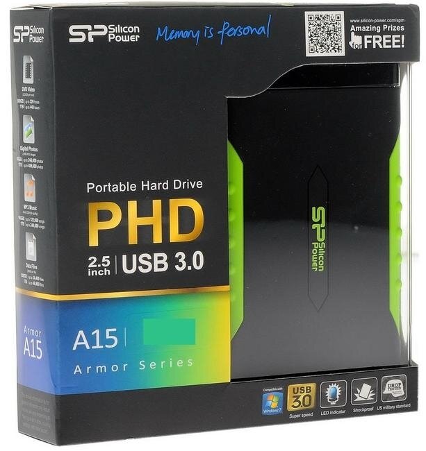 Ниже Вы можете прочитать отзывы на Жесткий диск Silicon Power USB 3.0 2Tb Sp020tbphda15s3k A15 Armor 2.5" черный/зеленый Sp020tbphda15s, ознакомится с подробными характеристиками, посмотреть интересные обзоры и фотографии на Жесткий диск Silicon Power USB 3.0 2Tb Sp020tbphda15s3k A15 Armor 2.5" черный/зеленый Sp020tbphda15s.