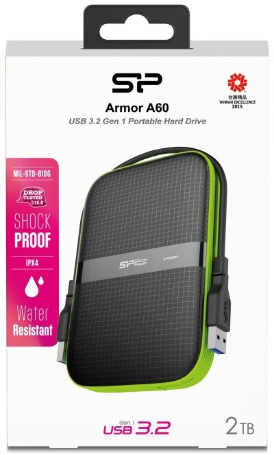 Портативный HDD Silicon Power Armor A60 2 TB USB 3.2, черный, пластик, 1594887