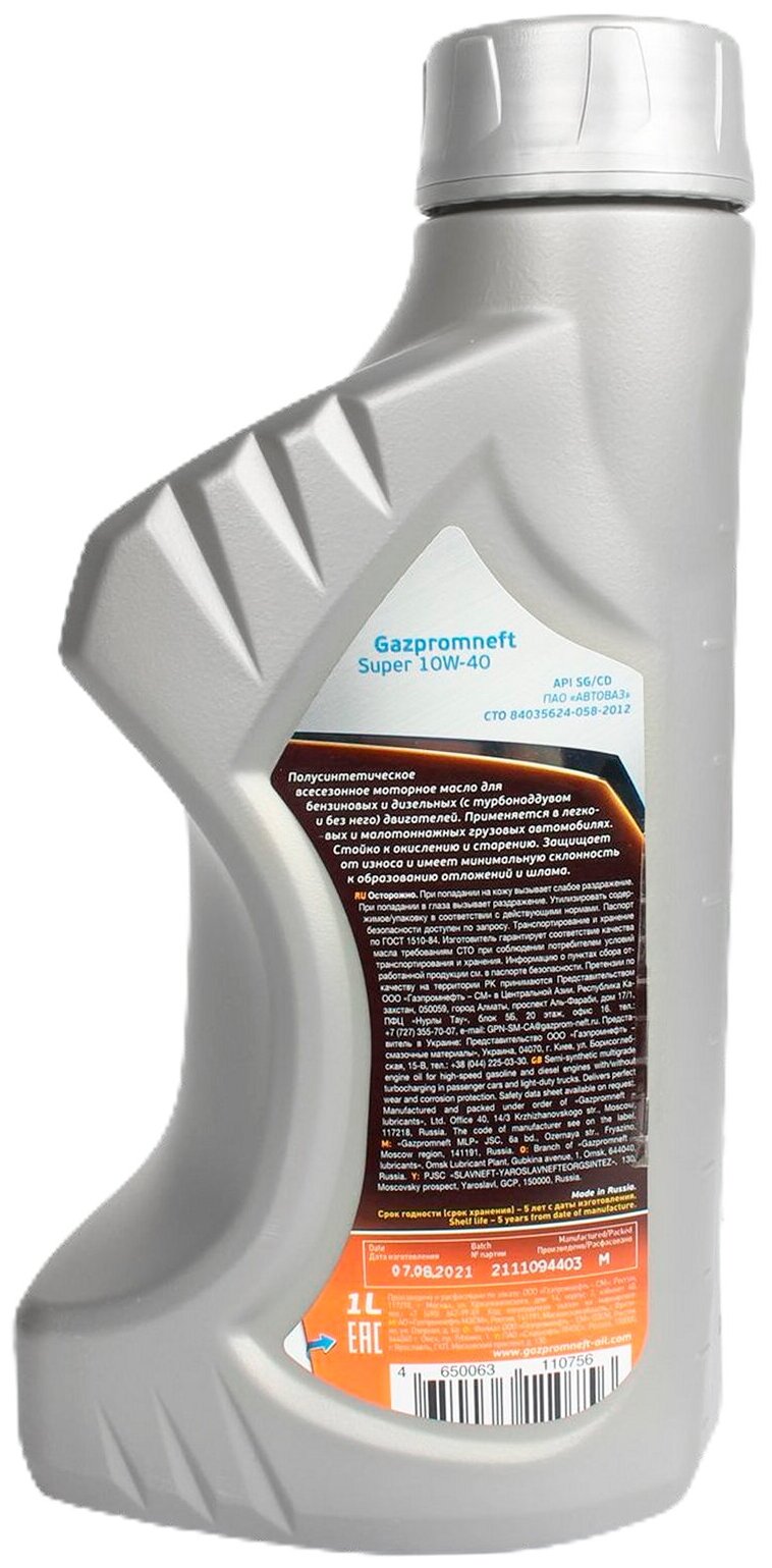 Синтетическое моторное масло Газпромнефть Super 10W-40, 1 л, 0.9 кг, 1 шт