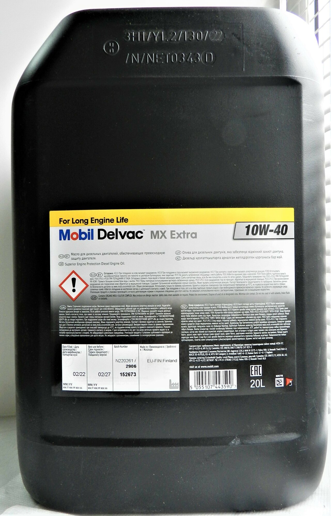 MOBIL 152673 Масло моторное Mobil Delvac MX Extra Синтетическое 10W-40 CF/CF-4/CG-4/CH-4/CI-4/SJ/SL 20л.