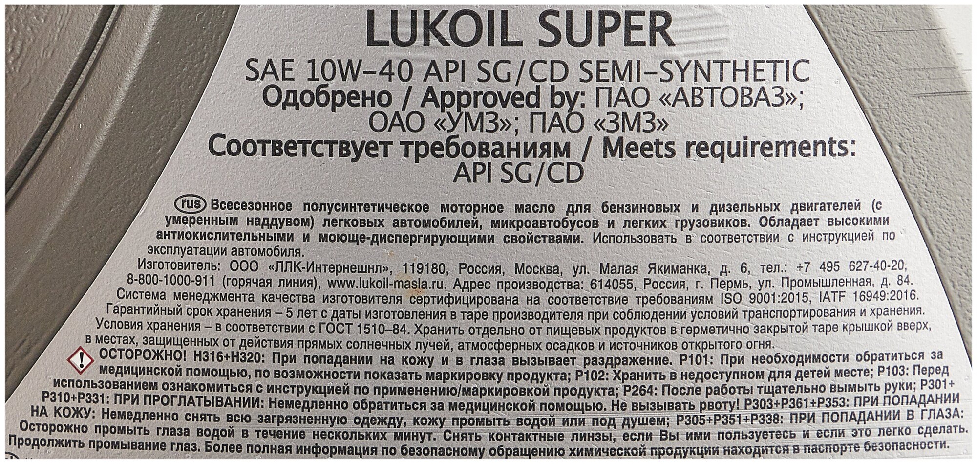Полусинтетическое моторное масло ЛУКОЙЛ Супер SG/CD 10W-40, 5 л интересное: