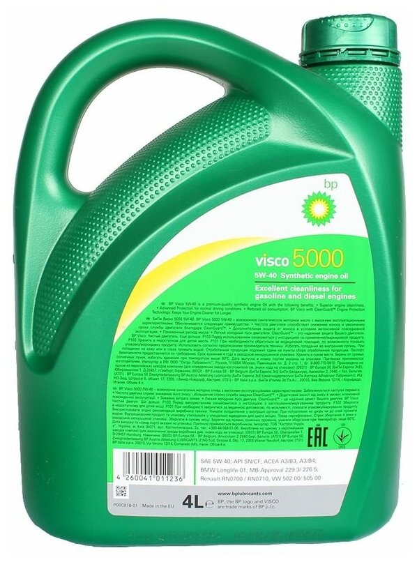 BP Bp 4260041011236 Bp Visсo 5000 Sae 5w-40 4л Масло Моторное Синтетическое Bmw Longlife-98, Mb 229.1 229.3, Vw 502 00/505 00...