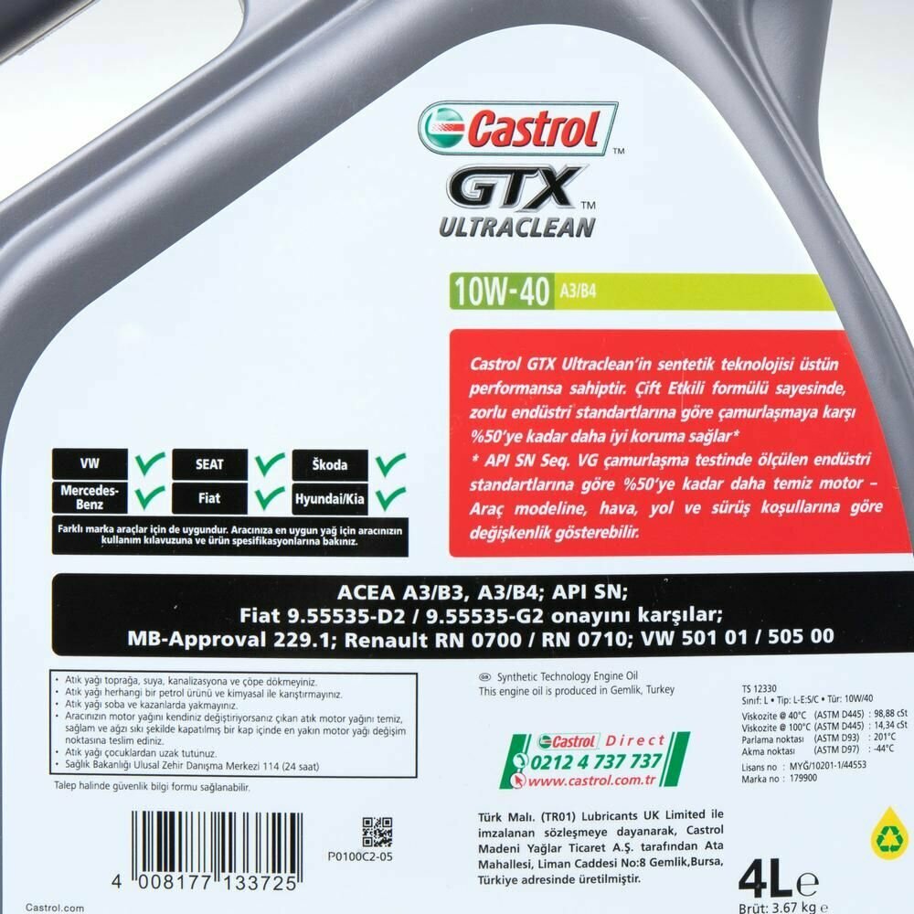 CASTROL 15A4E0 Castrol 10W40 (4L) GTX ULTRACLEAN_масло мот.! \ACEA A3/B3, A3/B4, API SL/CF, Fiat 9.55535-D2/G3