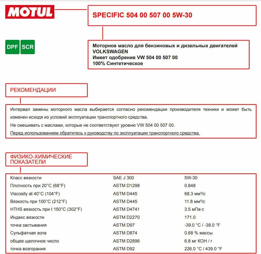 СохранитьMOTUL 106375 5W-30 5L SPECIFIC 504.00-507.00 ACEA C3 масло моторное синтетическое интересное: