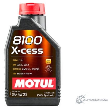 MOTUL 108944 Масло моторное 5W30 MOTUL 1л синтетика 8100 X-CESS SL/A3 1шт