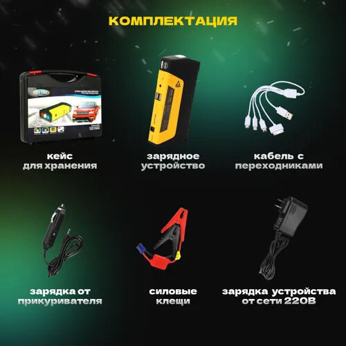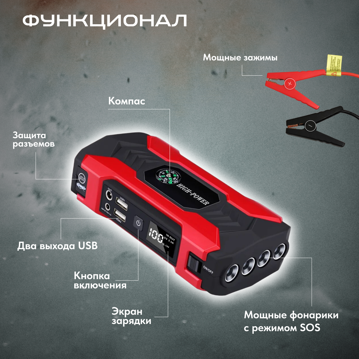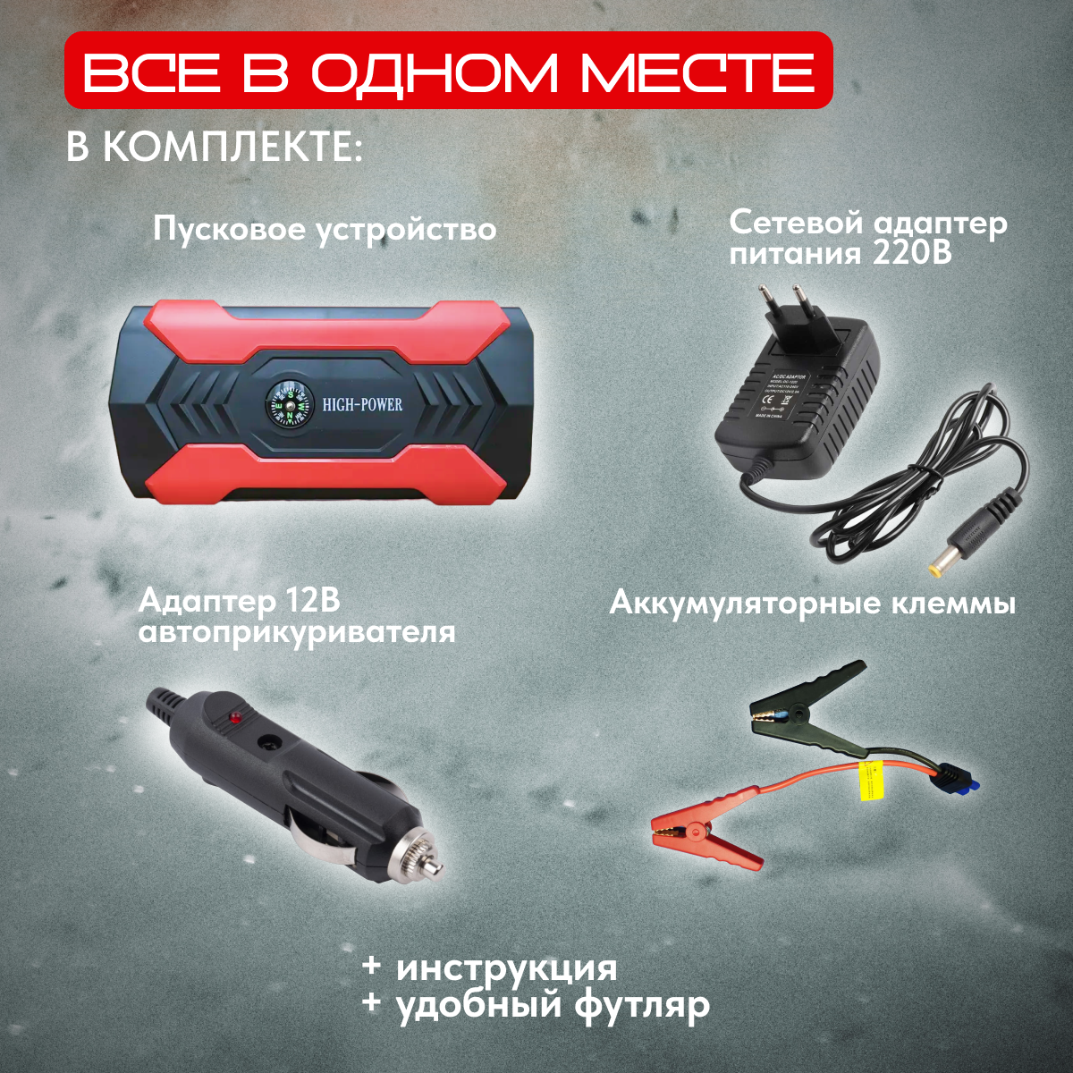 Портативное пуско-зарядное устройство 28000 мАч POWERBANK АКБ пауэрбанк High Power для автомобильных аккумуляторов, ноутбуков, телефонов интересное: