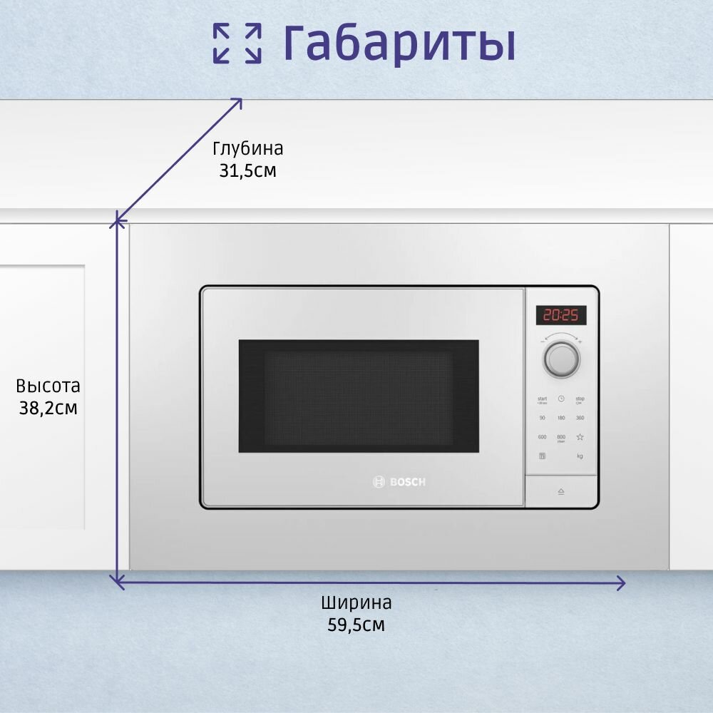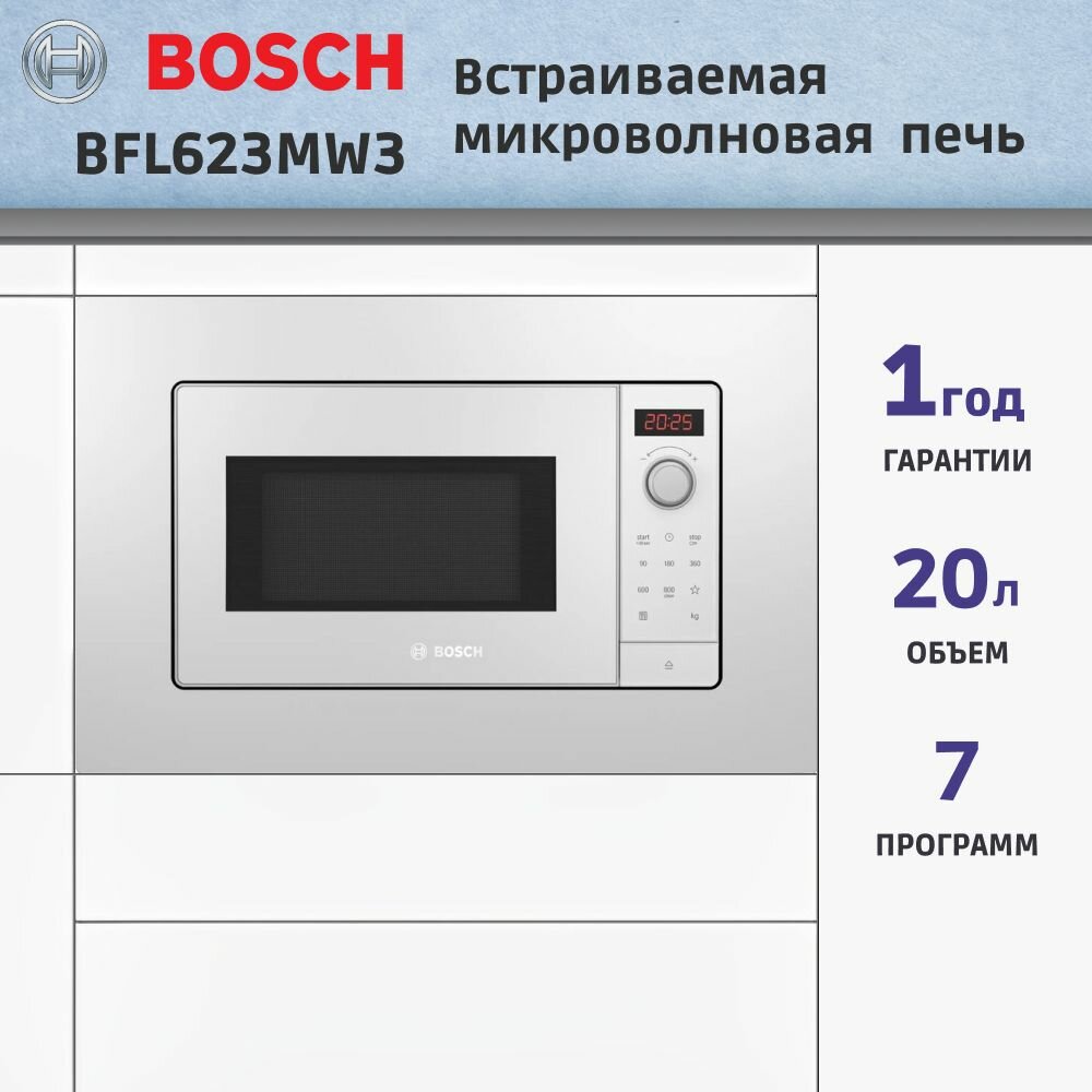 Микроволновая печь Bosch BFL623MW3 белый, 20л, 800Вт (встраиваемая)