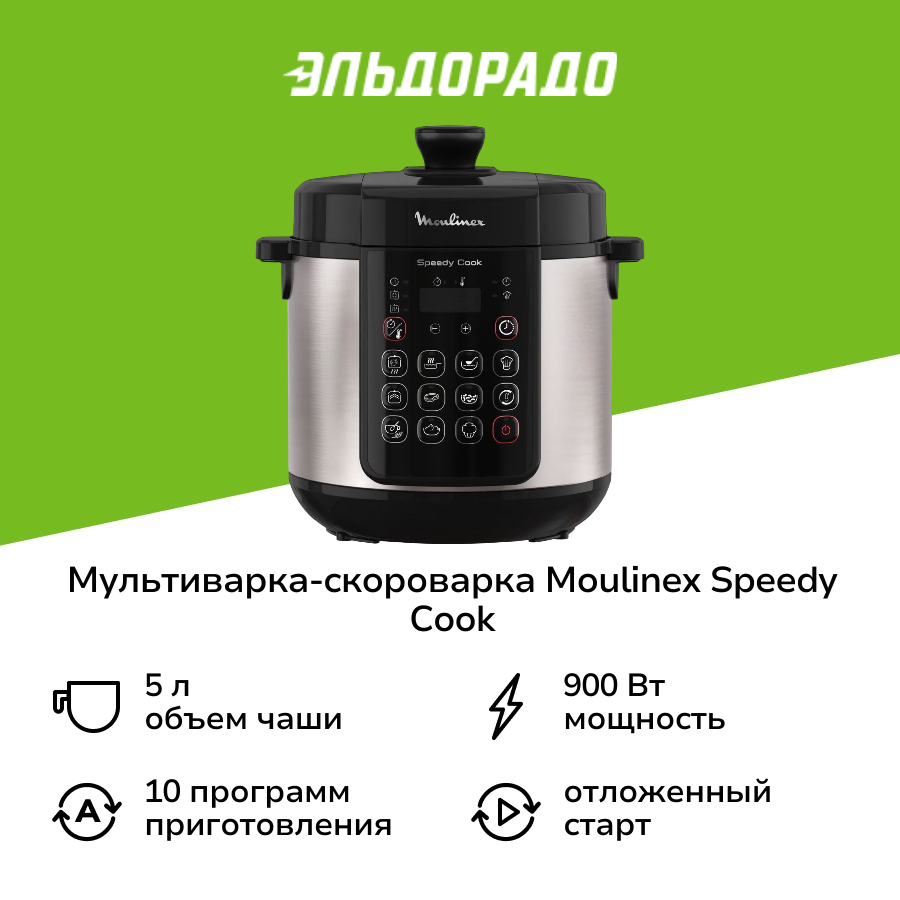 Мультиварка скороварка Moulinex Speedy Cook CE222B32, 5 л, 10 программ