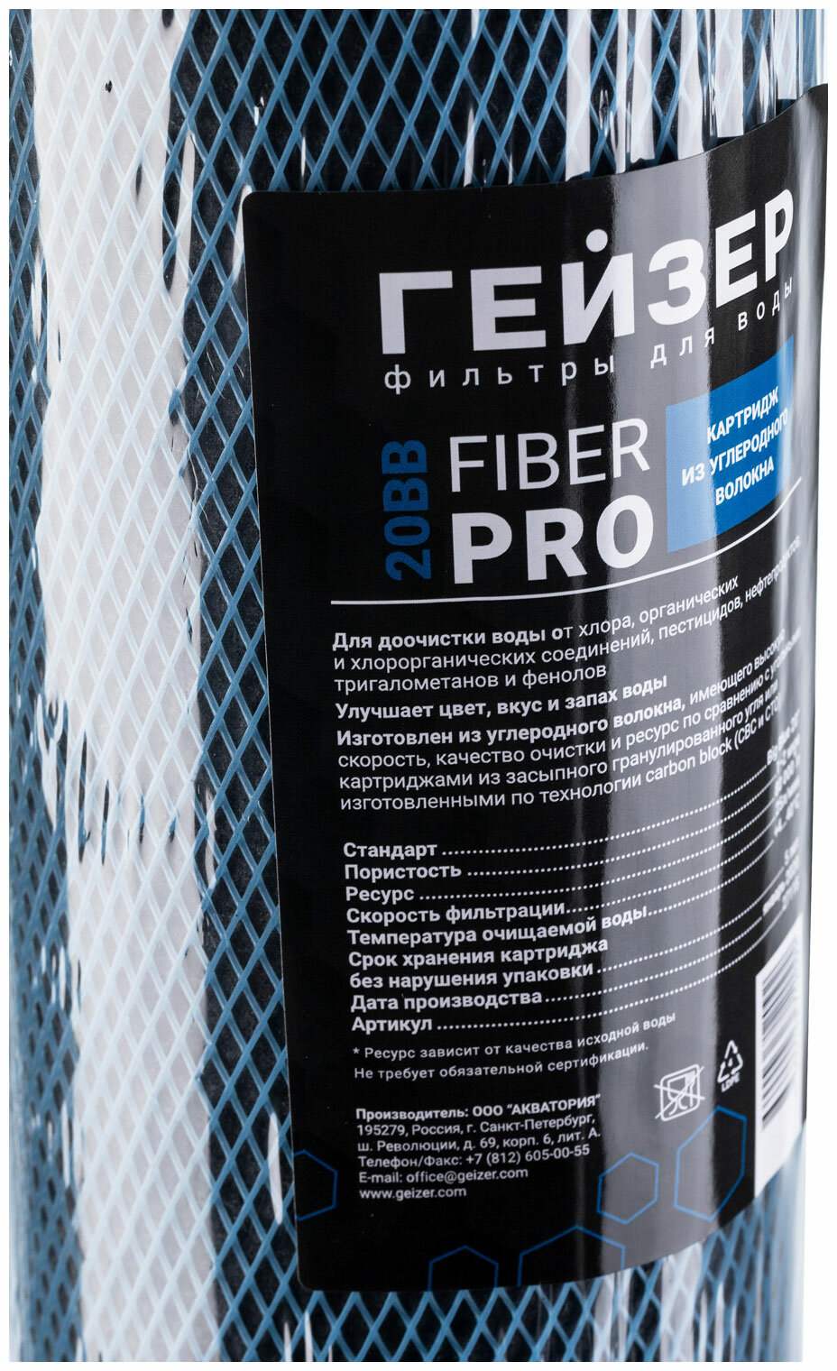 Сменный модуль для систем фильтрации воды Гейзер Fiber Pro-20BB из углеродного волокна (27115)