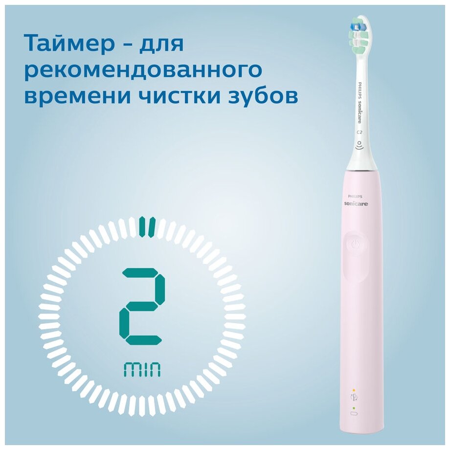 Электрическая зубная щетка Philips Sonicare серии 3100 со звуковой технологией, с датчиком давления и индикатором смены насадки щетки, HX3673/11, сахарная роза, розовый