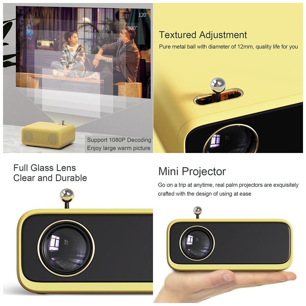Проектор Wanbo Wanbo Projector Mini XS01 800x480, 2000:1, 200 лм, LCD, 0.62 кг, желтый