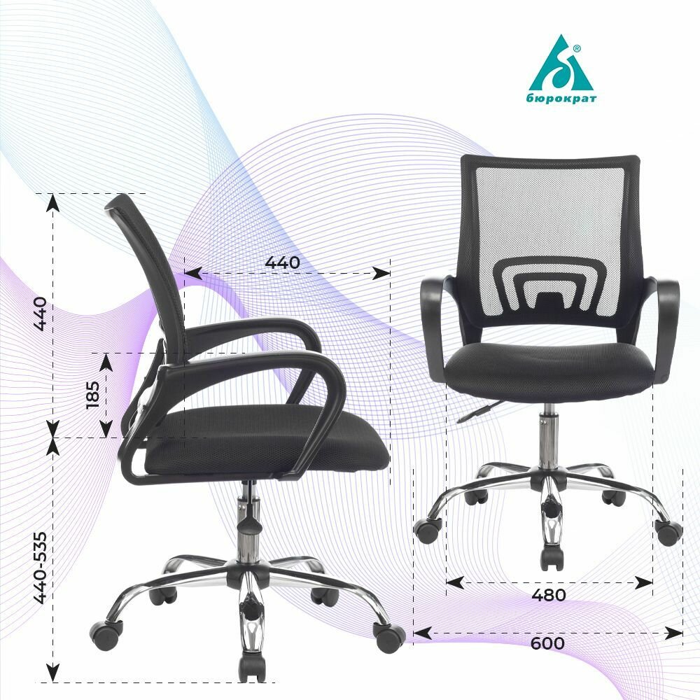 Кресло офисное Бюрократ CH-695NLTSL/BLACK крестовина металл хром, сетка/ткань, цвет: черный