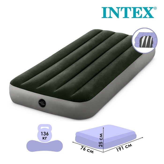 Матрас надувной Intex, 191х76х25 см, 64106, флокированный, 136 кг