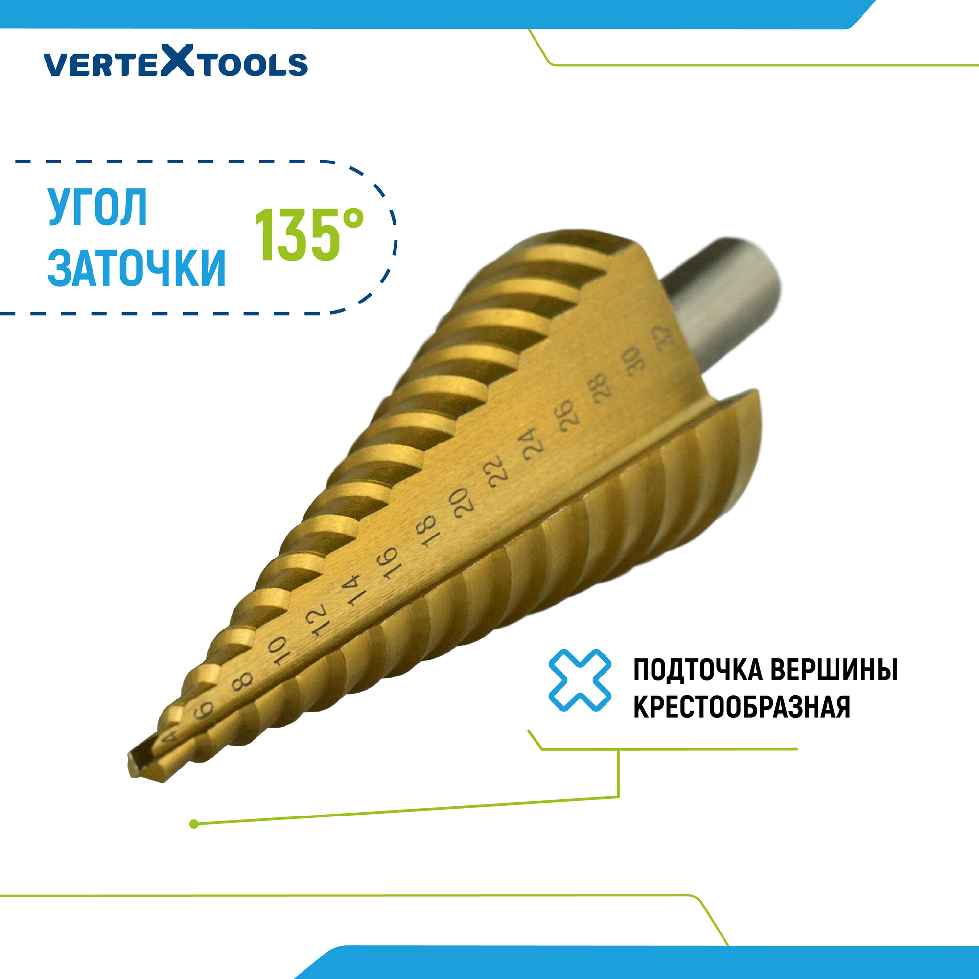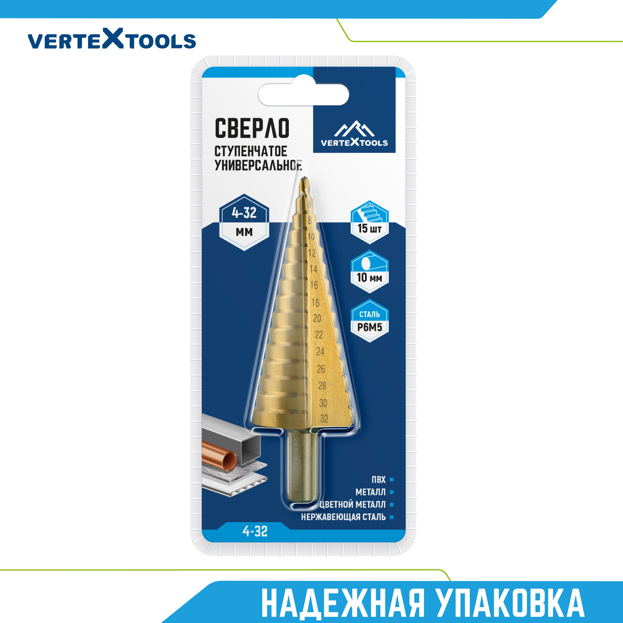 Купить Сверло ступенчатое по металлу Vertextools 4х32, шаг 2мм